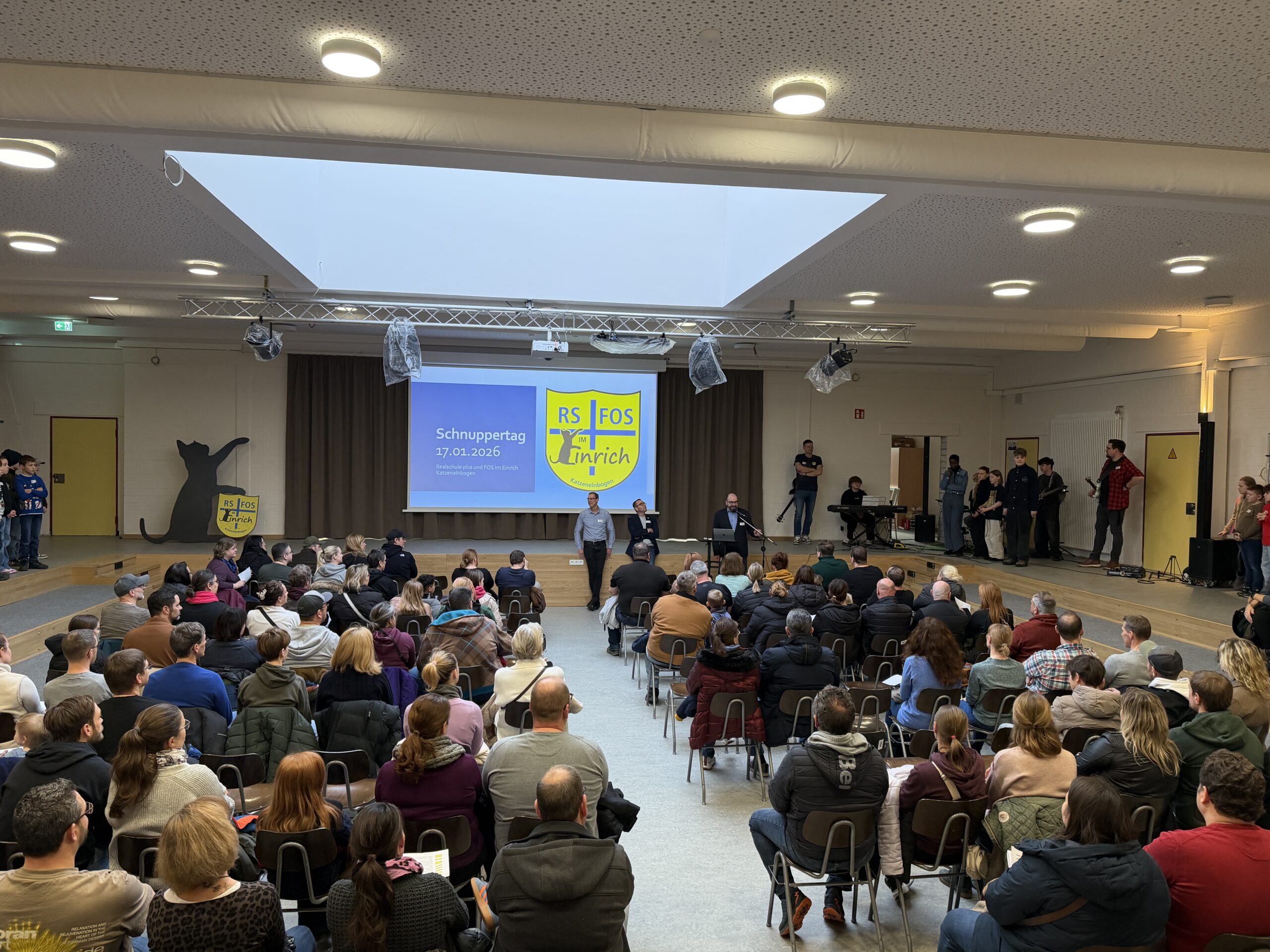 Mit Musik, regem Treiben und vielen neugierigen Fragen präsentierte sich die Realschule plus und Fachoberschule im Einrich am 17. Januar 2026 beim diesjährigen Schnuppertag. Rund 160 Kinder der künftigen Klassenstufen 5 sowie 11 kamen gemeinsam mit ihren Eltern an die Schule, um sich ein Bild vom Schulalltag und den vielfältigen Angeboten zu machen.