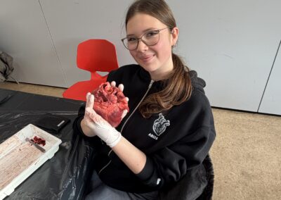 Im Rahmen der Rundgänge konnten die Gäste sowohl Einblicke in den regulären Unterricht gewinnen als auch an eigens für den Schnuppertag vorbereiteten Aktionen teilnehmen. Die Bandbreite reichte vom Herstellen von Salzkristallen in den Klassen 5 über Erste-Hilfe-Angebote und Einblicke in die Proben der Theater-AG bis hin zu praktischen Tätigkeiten wie Sägen in den Werkräumen. Auch moderne und weiterführende Themen kamen nicht zu kurz: Informatik für Fortgeschrittene, die Robotik-AG sowie das Sezieren von Organen stießen auf großes Interesse. In der Fachoberschule erhielten die Besucher zudem Einblicke in Projektarbeiten im Bereich Marketing, bei denen auch Praktikumsbetriebe der 11. Jahrgangsstufe vorgestellt wurden. Wie jedes Jahr fanden einige ehemalige FOSsis den Weg zurück in die heimischen Flure und unterstützten herzlich bei der Werbung für diese Schulform.